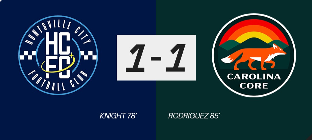 Huntsville City hosted Carolina Core for their second match-up of the season. These are the bottom two teams in the NextPro Eastern Conference, with Huntsville hopping over Core in recent weeks. Part of that was due to the HV win over them a couple of weeks ago. On a hot, humid night Carolina dominated possession, and had the most chances - but couldn't capitalize. They had 16 shots to Huntsville's 5, 10 corners to Huntsville's 1, and 65% of the possession. Somehow, Huntsville scored first in the 78th minute. The Core would answer just a few minutes later, and the game ended in a 1-1 draw. In the ensuing shootout, Core put one more in than the Boys in Blue to collect an extra point.