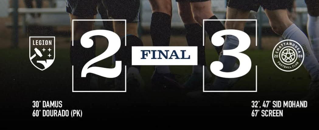 The second half started out with a quick score by CFC, and then Legion tied it up on a PK by Dourado after Rufe was fouled in the box. The Legion attack continued to look very potent, but Chattanooga got another goal on a great counter, with a key pass from Nagelstad. CFC took the win at 3-2.