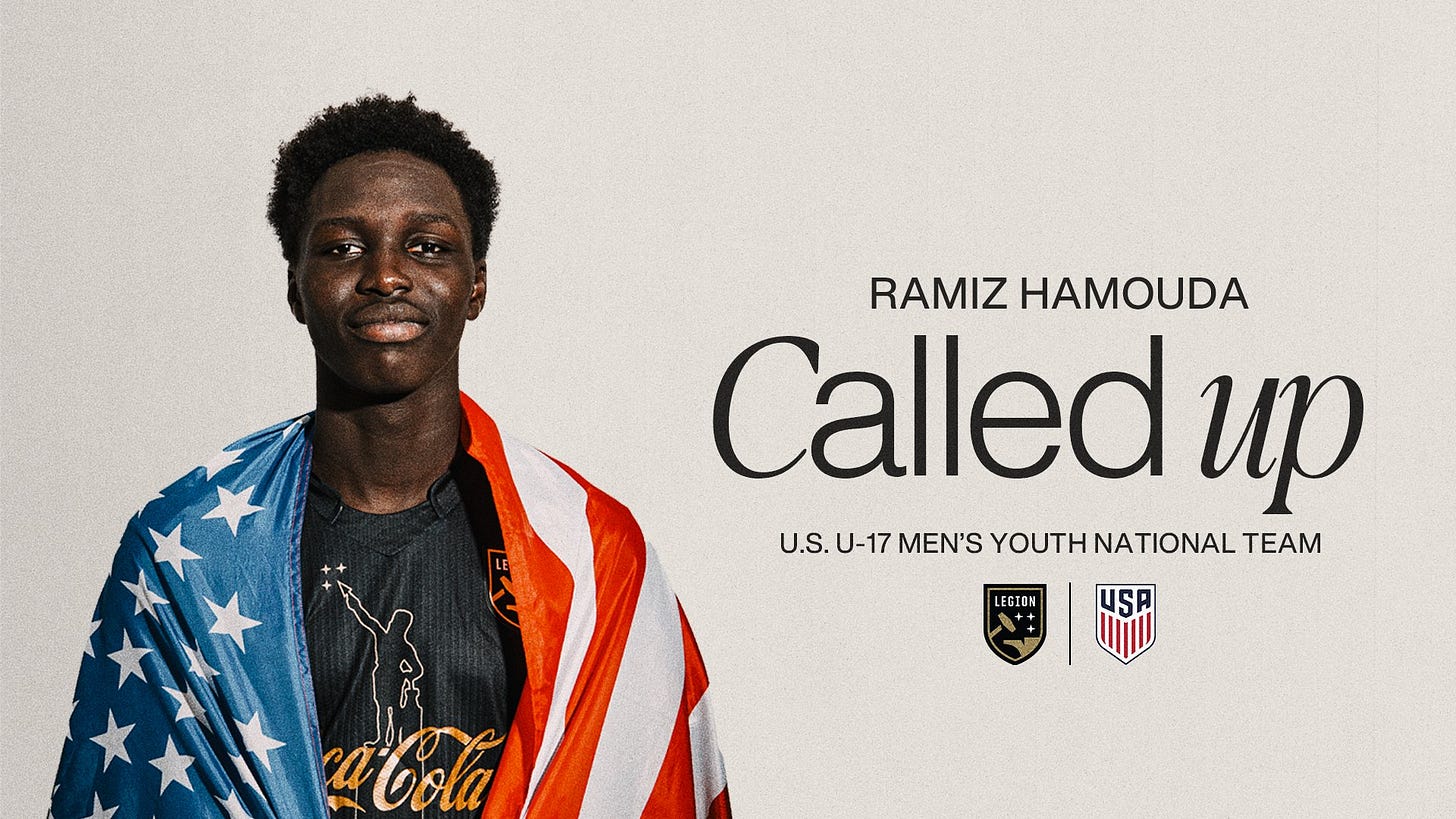 Ramiz Hamouda has been called up to represent the USYNT squad for U17 World Cup qualifying matches. The 16 year-old is fresh off of a month-long training camp with Werder Bremen in Germany, and showed great form in the Legion friendly against Atlanta. Qualifying matches are Feb 10 thu 17 in Costa Rica. The top team from the group will compete in the U17 World Cup in Qatar in November of this year.