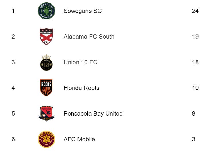 The East is a spoiler story waiting to happen. It all hinges on Pensacola Bay United.