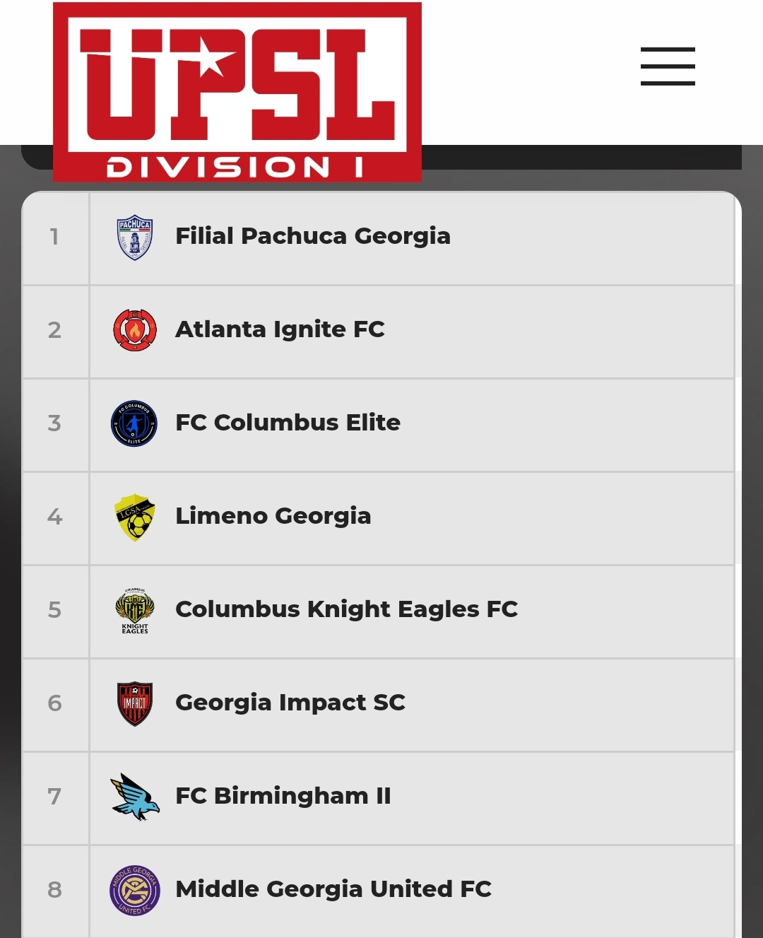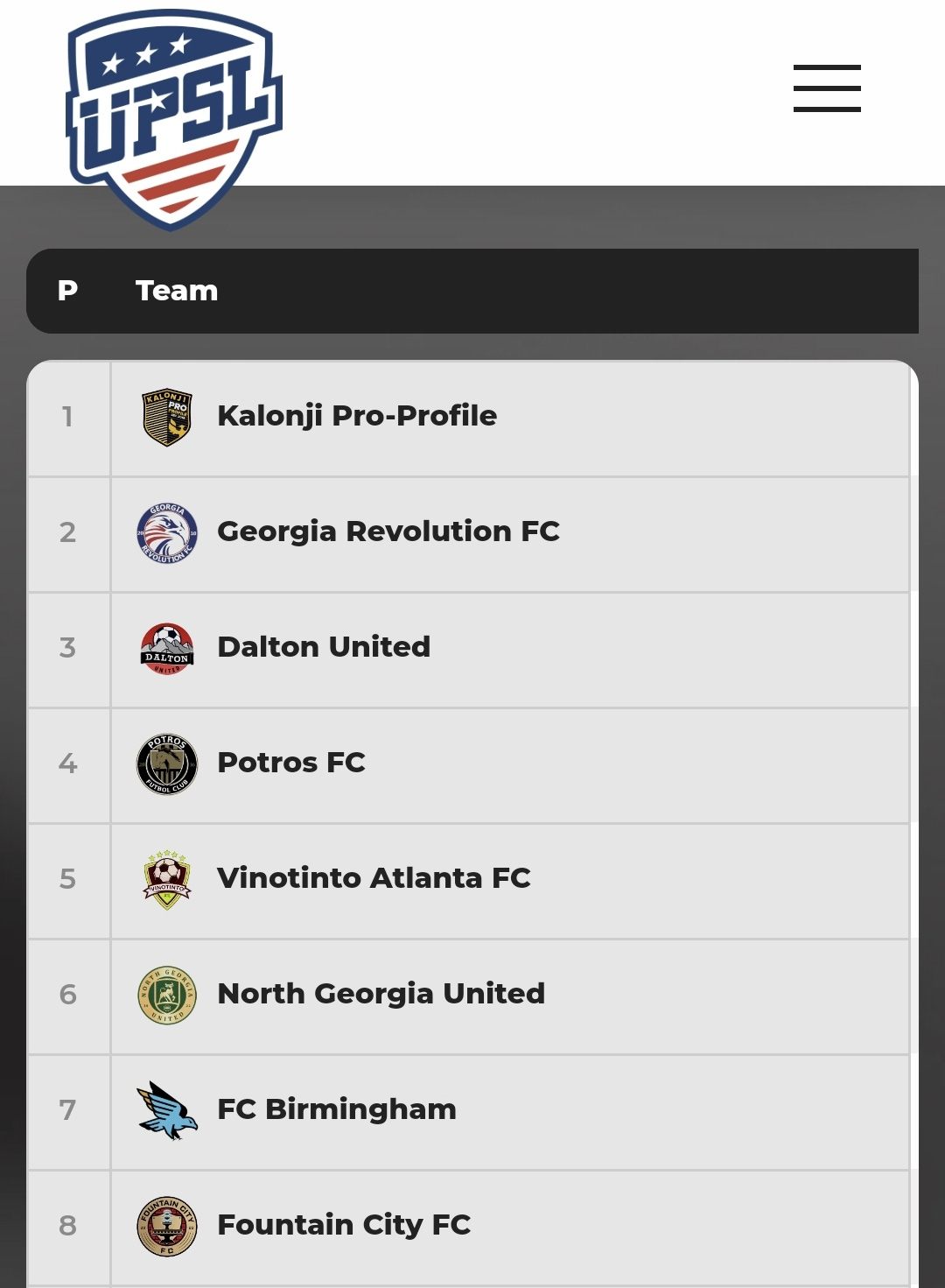FC Birmingham and Fountain City are in 7th and 8th places respectively, and should have their playoff berths secured. Fountain is four points clear of the team immediately below them, and six points ahead of the 10th place team, who has a game in hand. The final games are this weekend for Fountain and FCB. Fountain can pass FCB if they win and Birmingham loses.