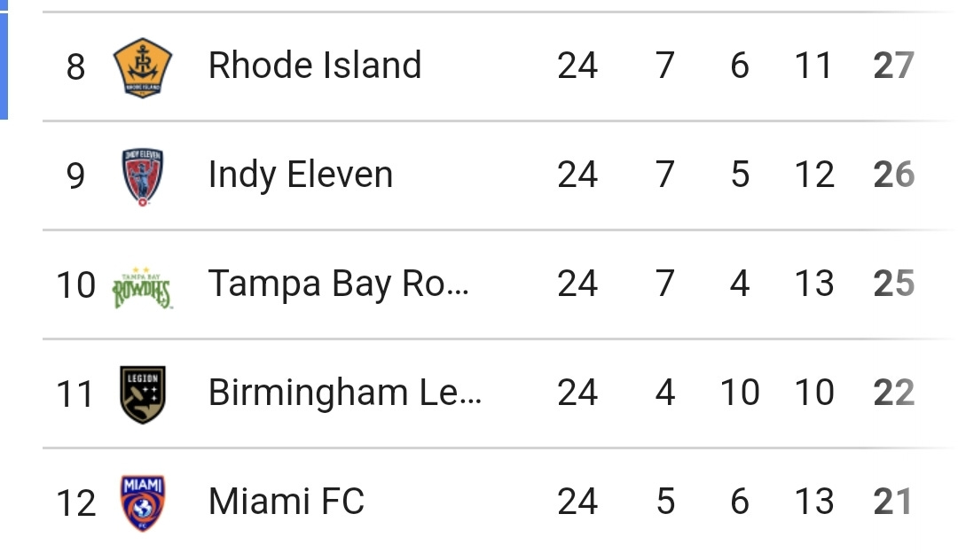 Birmingham's mid-week loss to Tampa Bay was pretty devastating for hopes of making the playoffs. Legion is five points below the playoff line, with six games remaining. Truly do-or-die time. This weekend's scenarios are very straightforward. Birmingham must get three points against Indy Eleven, and:
