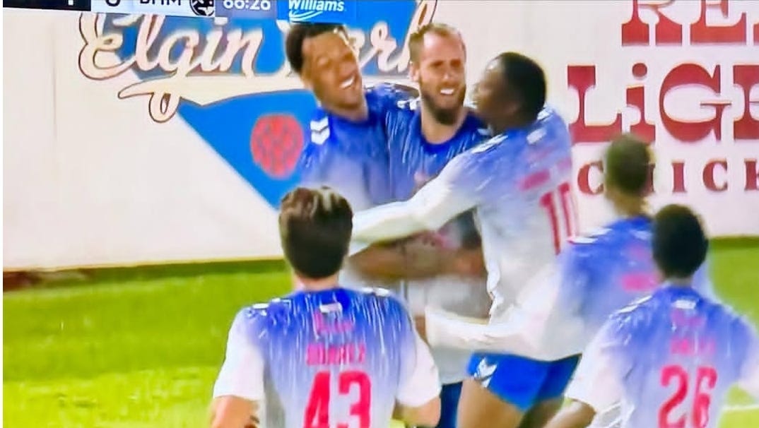 Birmingham regrouped at halftime, and came out with intensity for the second half. Legion would have the bulk of possession throughout, and looked more dangerous overall. After the referee, the big story of the night was Jake Rufe. Jake has had a strong season, but largely was sidelined for the last month. He started on Saturday, and did a great job on the defensive end, keeping things steady. As the game dragged on, Legion made several substitutions to look for a spark. Preston drew a foul well outside of the box, and then lined up to take the free kick. He put solid service into the box, and a deflection brought it towards the back post, where Jake Rufe outmuscled a Tulsa player and fired a header into the goal. Birmingham had one more chance at the death. Damus sent in a beautiful cross to an unmarked Vassell, but he missed the chance, sending the ball wide. The final score was 1-1, with Jake Rufe as the hero for Birmingham.